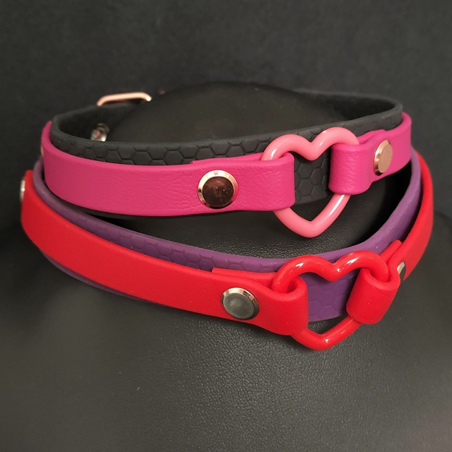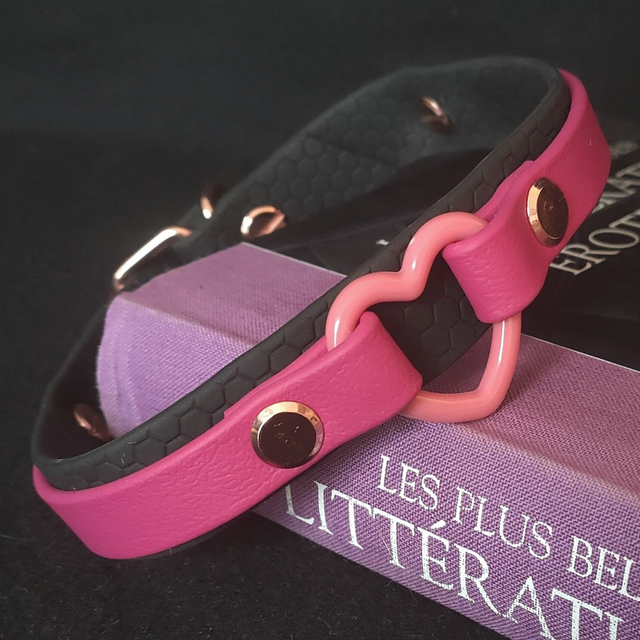 Collier en sangle Hexa noire et BioThane® rose fuchsia,