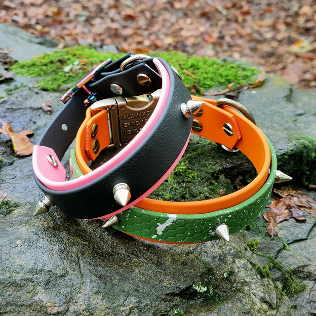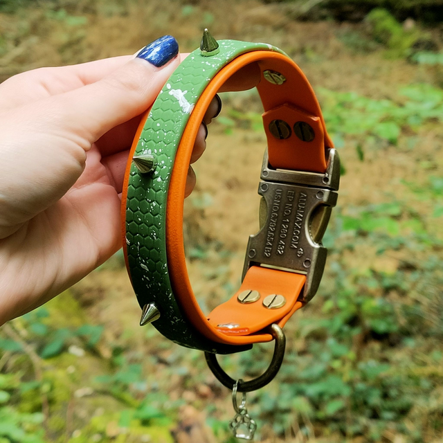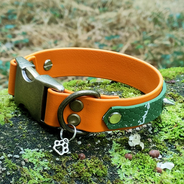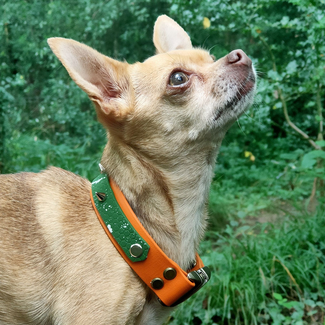 Collier en BioThane® orange et sangle Hexa vert kaki,