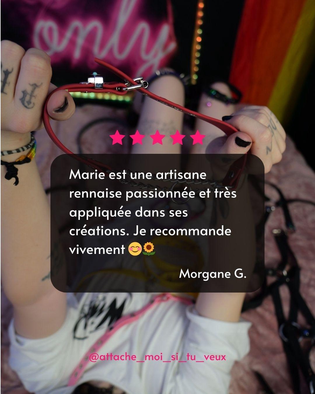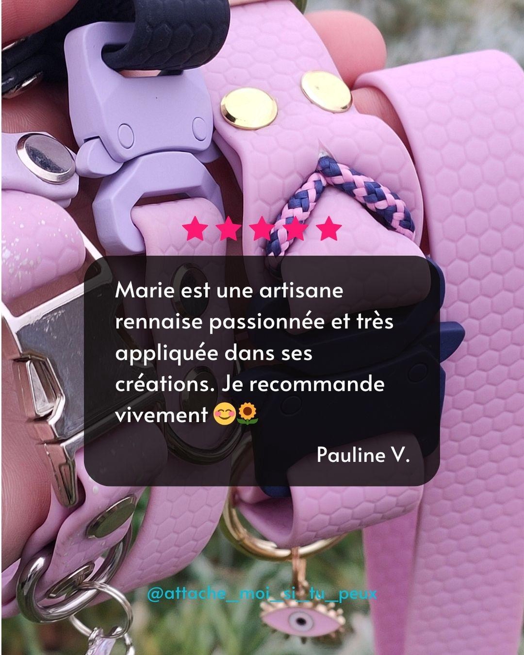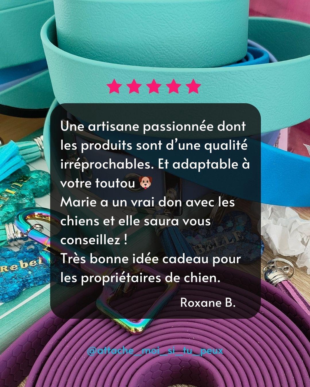 CrĂ©ative de nature, me voici Ă faire 25 colliers et 36 longes pour un seul Bibou⊠LâidĂ©e de monter mon entreprise arrive quelques mois plus tard en septembre 2024.